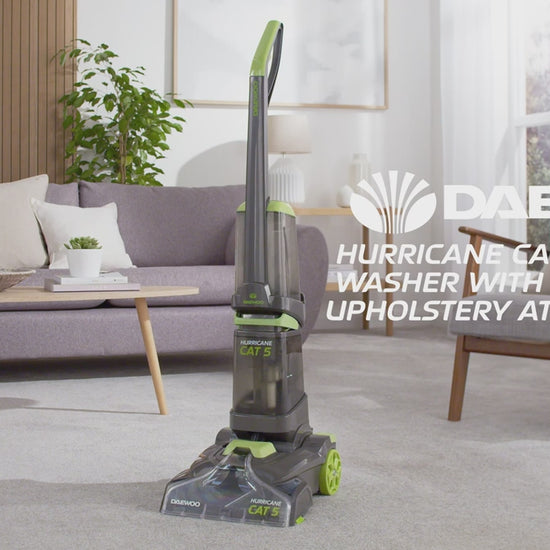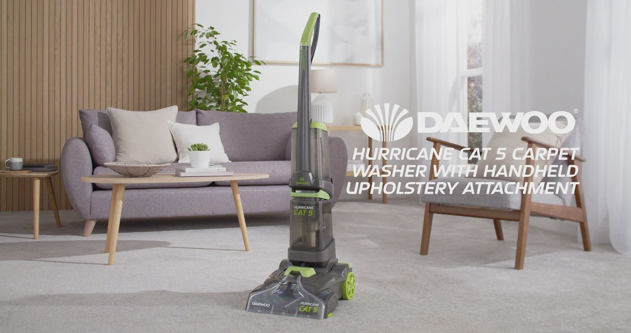 Revive your home with the Daewoo Hurricane Cat 5 — a powerful upright carpet washer designed to tackle tough stains, pet messes, and everyday dirt across carpets, rugs, sofas, and more. With a high-performance 800W motor, dual water tanks, and a dedicated 2.5m handheld upholstery tool, this cleaner ensures a professional-grade clean throughout your home.