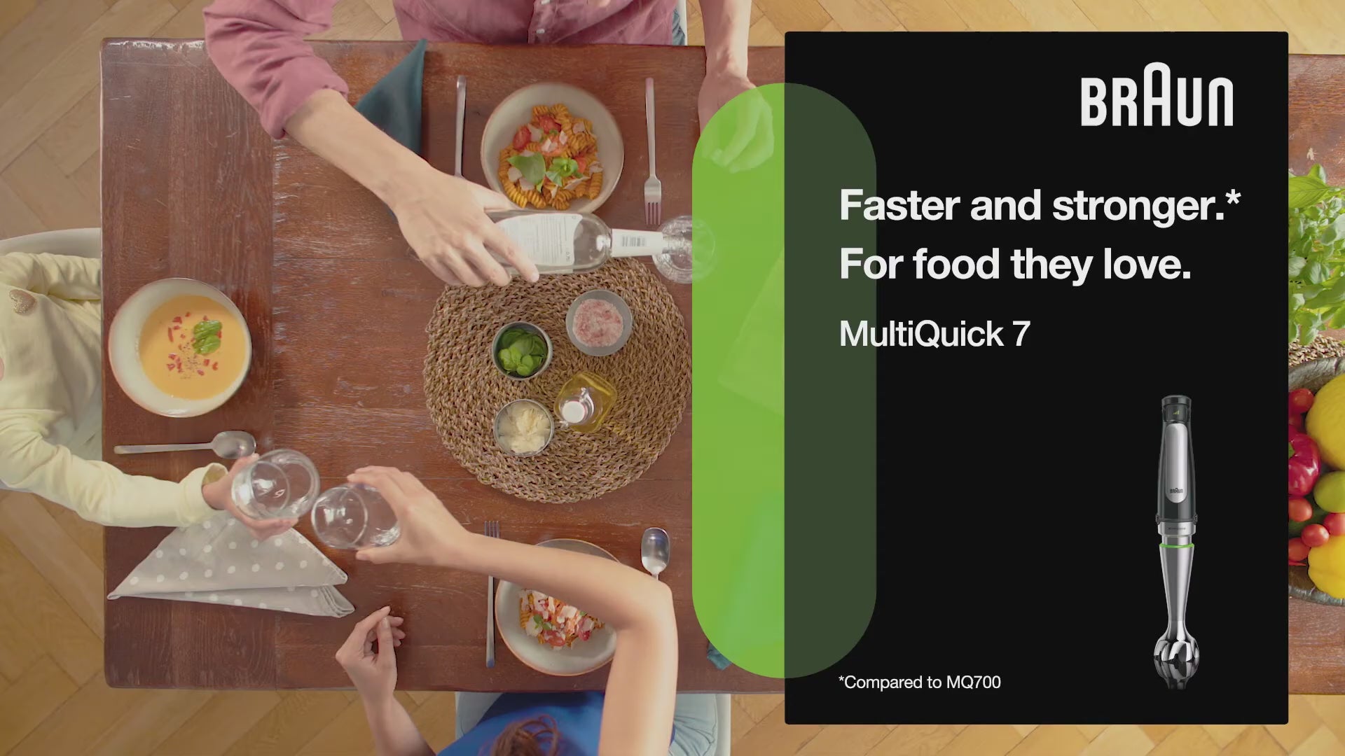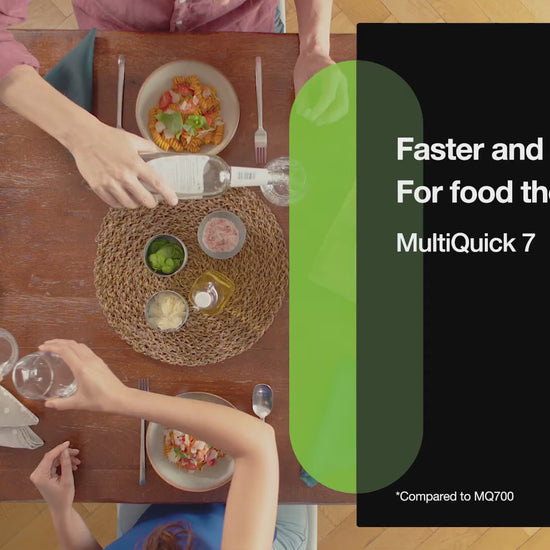 The new Braun MultiQuick 7 hand blender is designed to help you make healthy meals for your family and friends – fast and easy. It now features world’s first ActiveBlade technology. This innovative flexible shaft gives you 250 % more active cutting surface to work with* – a clever kitchen helper so you can get the job done easily. It also features Braun’s new Easy SmartSpeed technology, which puts you in control with just one touch. Simply apply pressure on the control button to adjust the power intuitively and without interruption. Compared to Braun hand blenders with non ActiveBlade shaft.