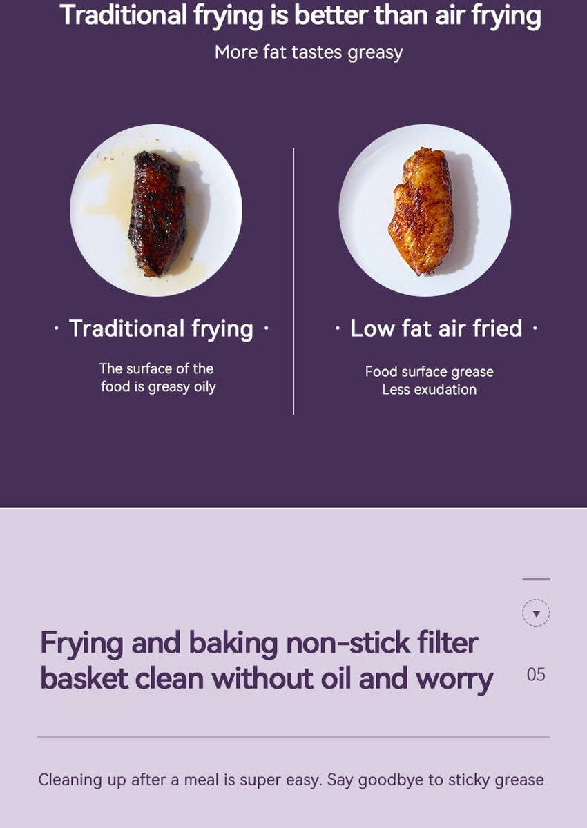 With an expansive 8 L cooking capacity (basket holds 5 L), this air fryer lets you cook larger meals in one go, perfect for families or meal prepping .